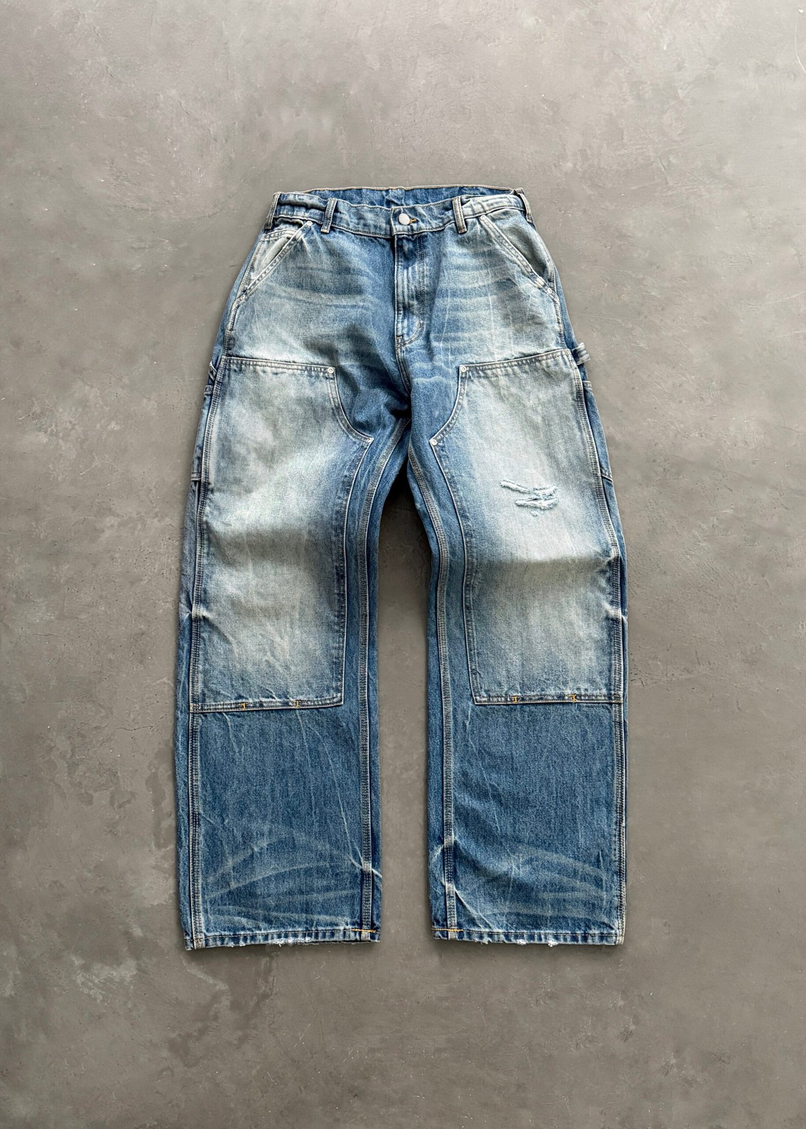 DISTRESSED DENIM DOUBLE KNEES – FADED BLUE