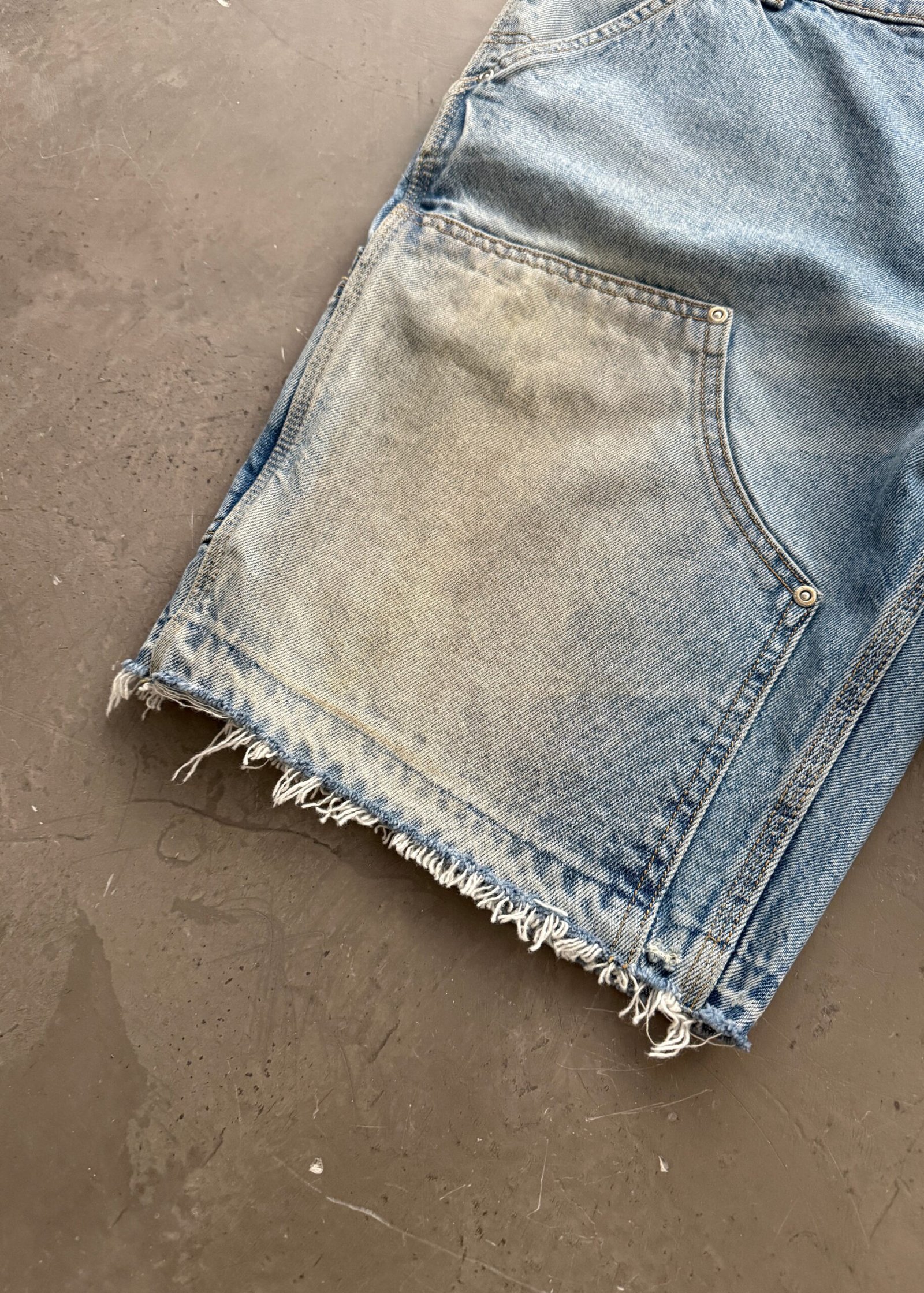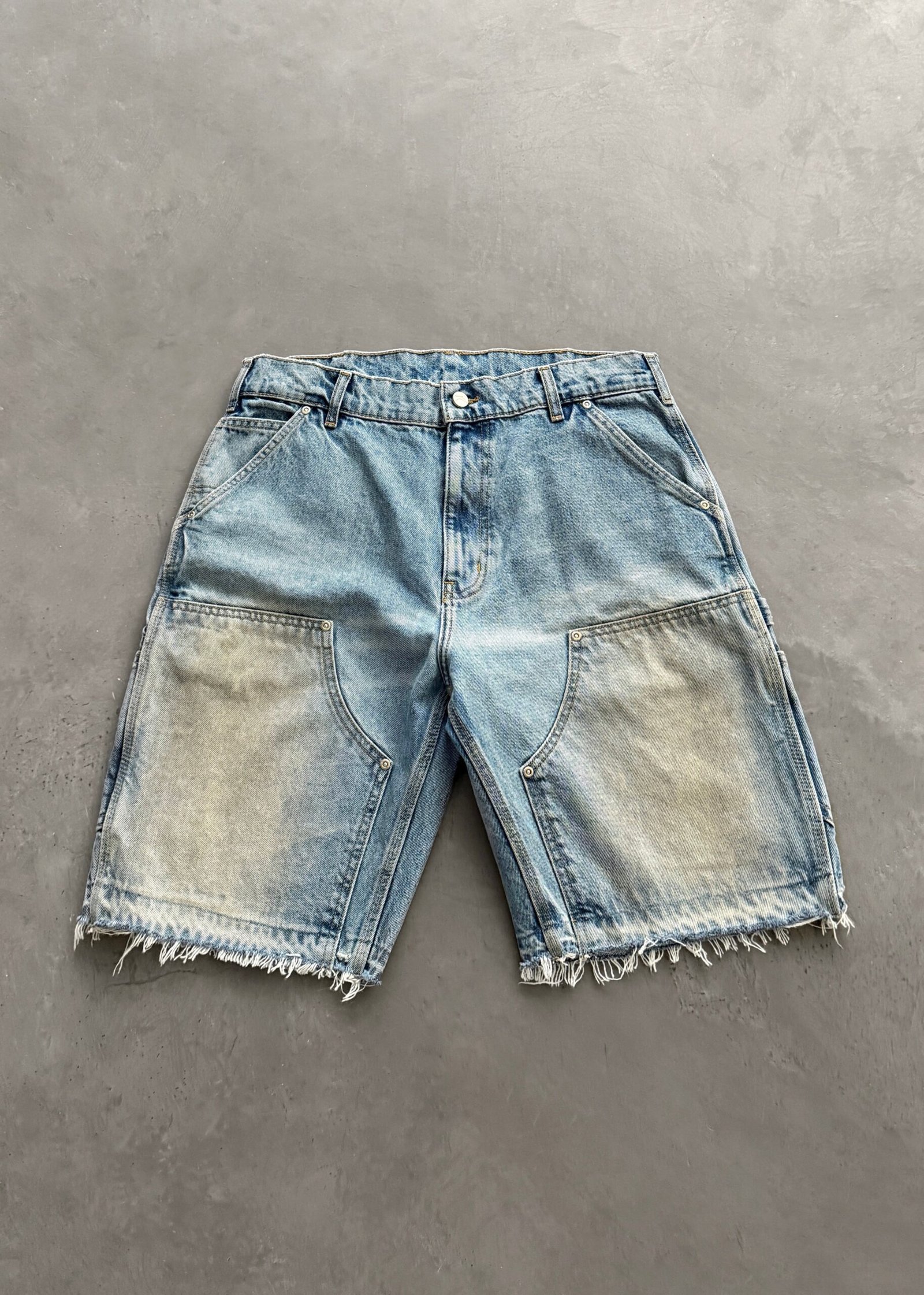 OPEN HEM DENIM DOUBLE KNEE SHORTS – DIRTY WASH